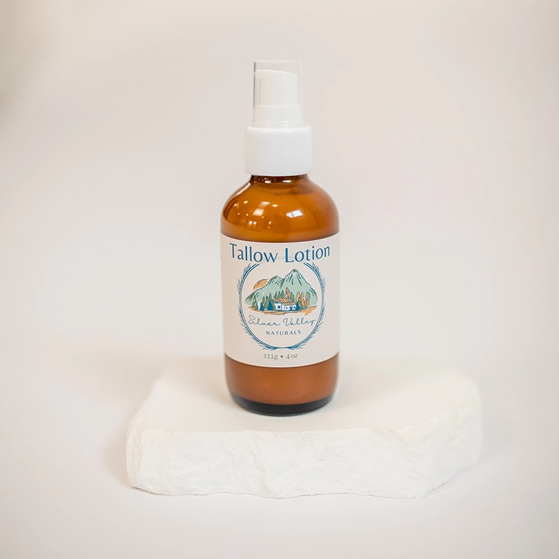 Our Tallow Lotion is rich and fast-absorbing crafted with locally sourced ingredients like grass-fed tallow we dry-render in small batches, aloe vera hydrosol grown and distilled locally without the use of pesticides, and pesticide-free calendula and chamomile flowers carefully infused to add a light, earthy scent.